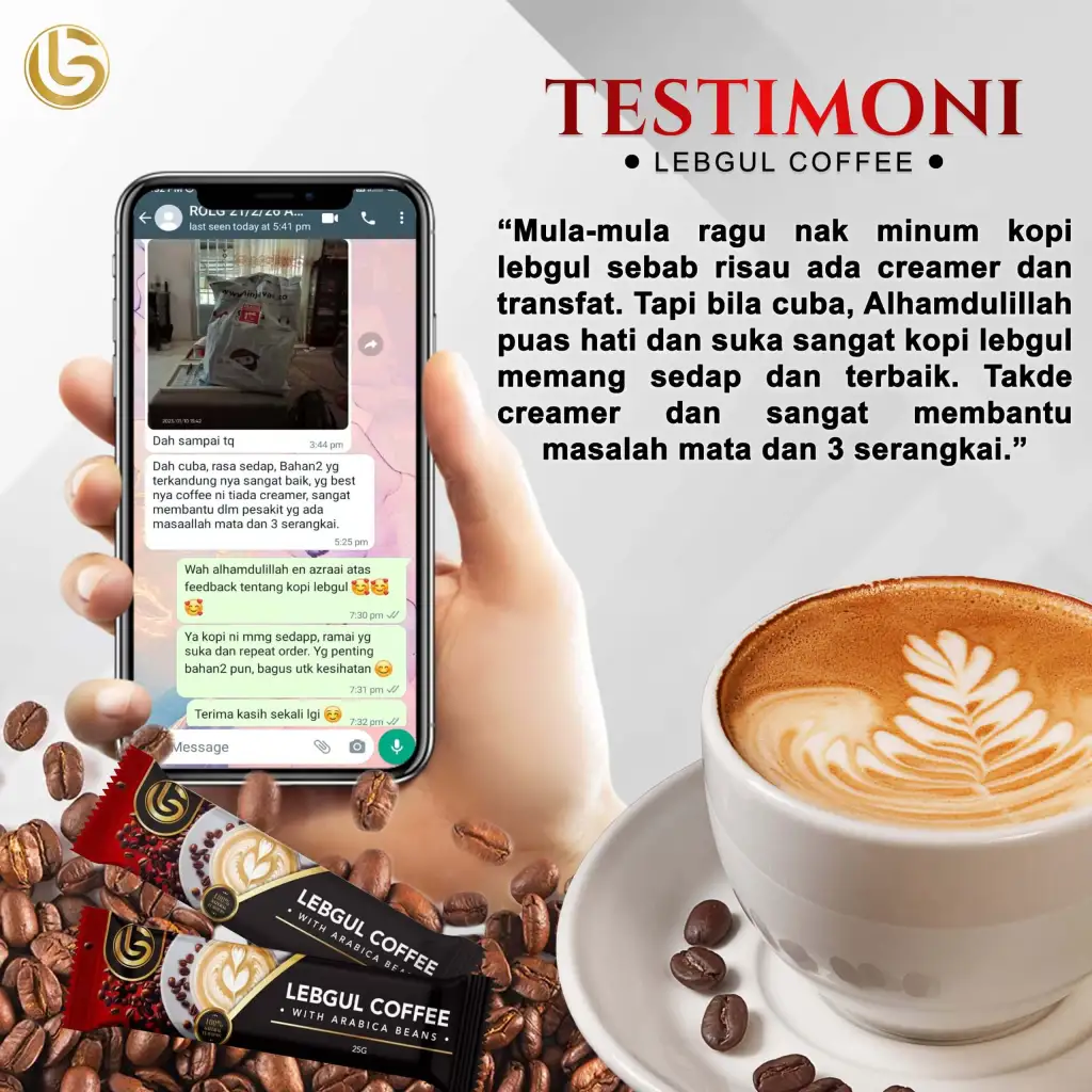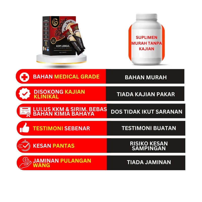 Tidak. Kopi Lebgul diperbuat daripada 100% ramuan semulajadi, bebas daripada bahan kimia berbahaya, steroid, dadah atau logam berat, dan telah lulus KKM serta ujian makmal bebas.
